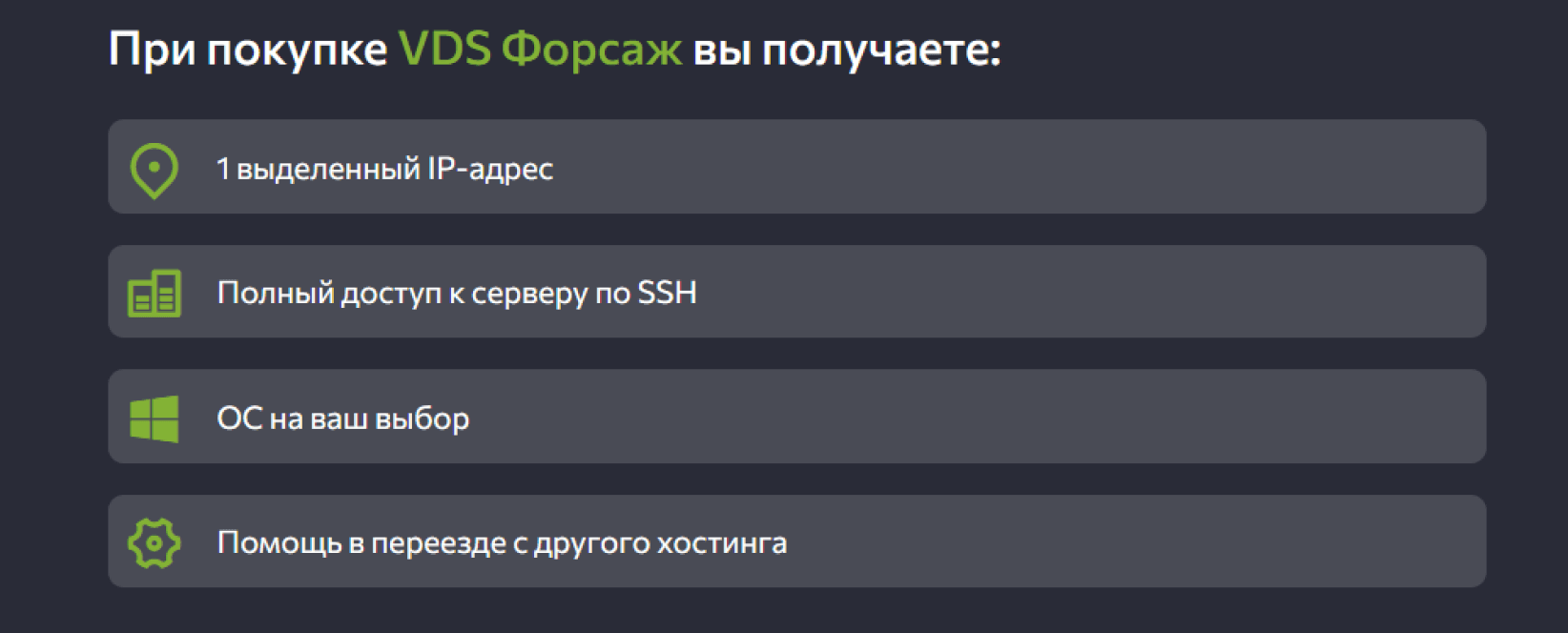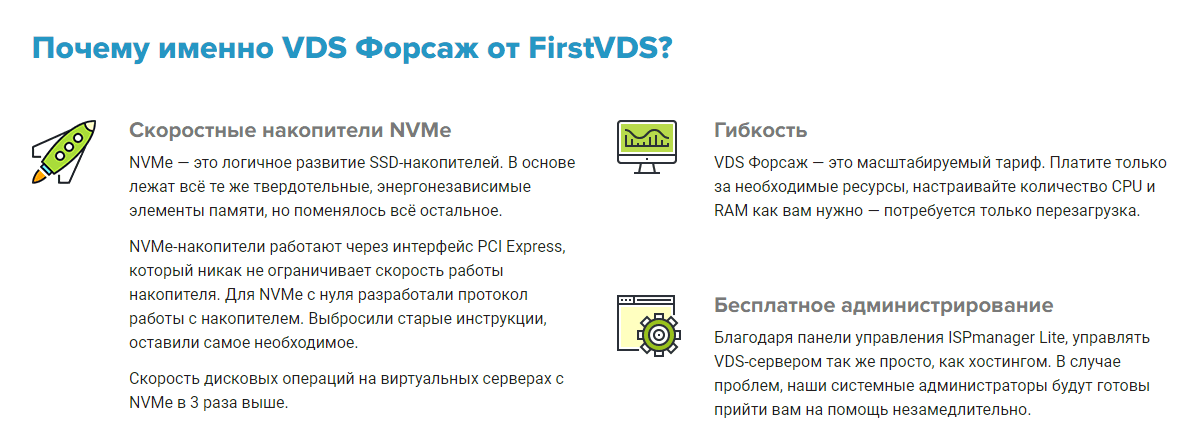 У FirstVDS есть разные “преконфиги” вроде “VDS Форсаж”, каждый конфиг обладает своими преимуществами, их выделение должно помочь с выбором нужного.