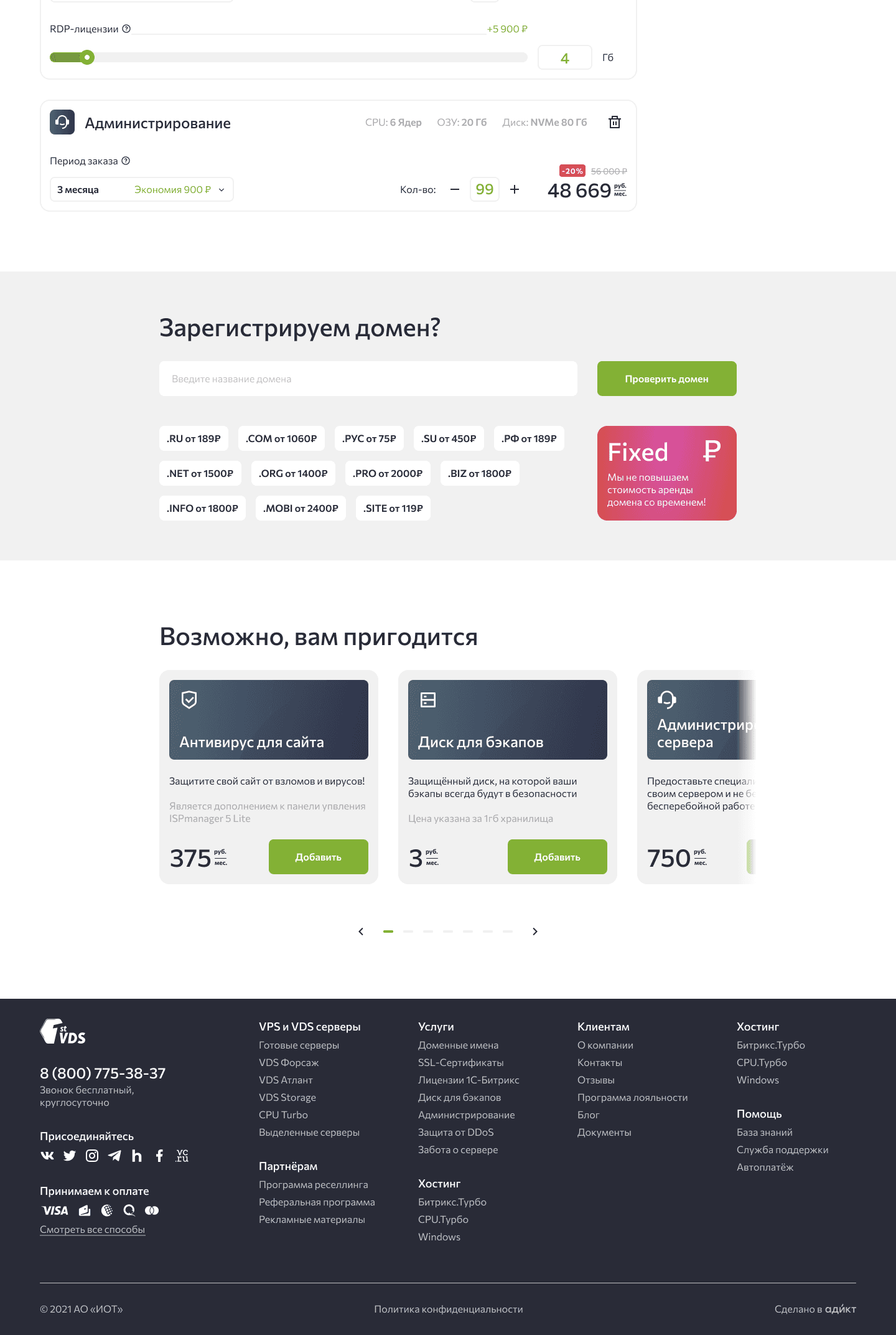 Вместе с серверов часто берут доменное имя или защиту от DDoS, добавление подобных услуг в корзину может повысить конверсию в их покупку